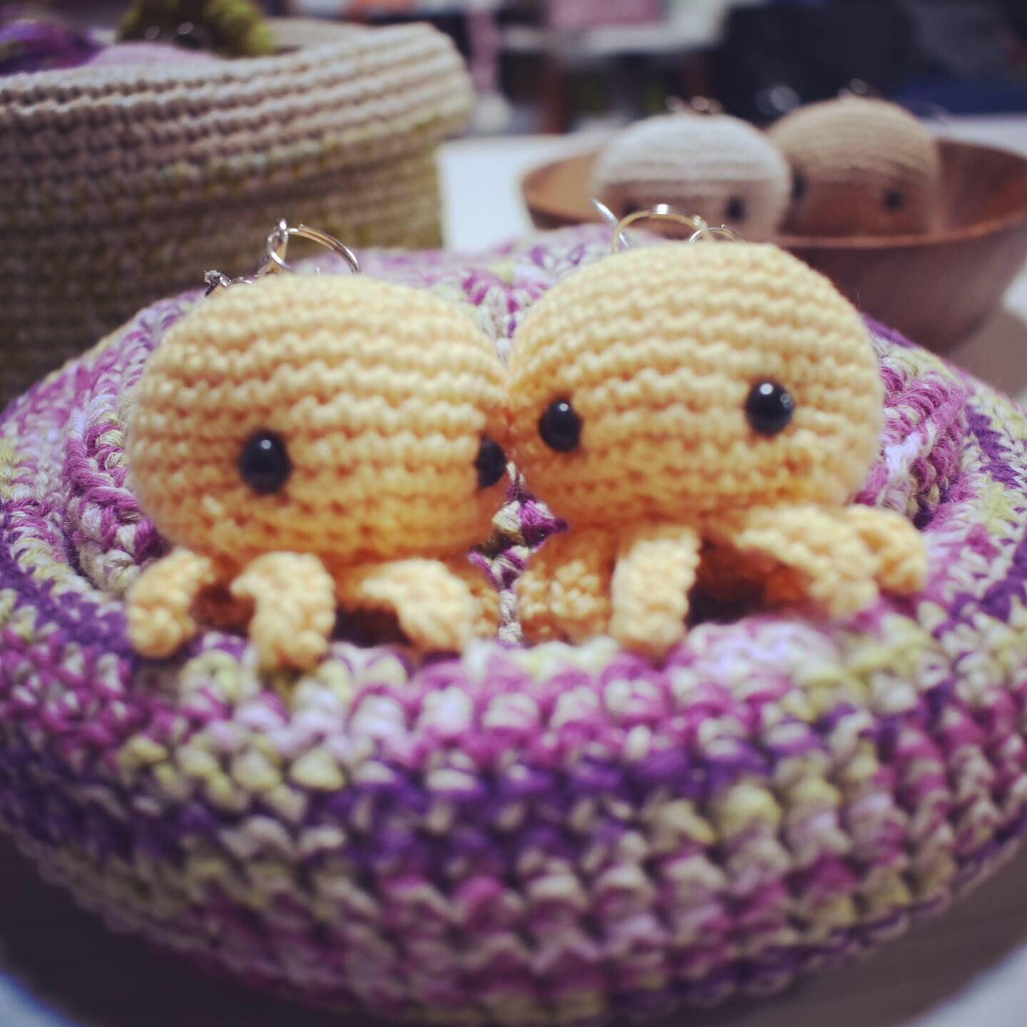 夏糸で編んだ「ちびクラゲちゃん」やっとお目見えしました。