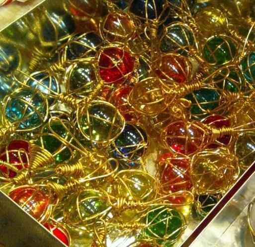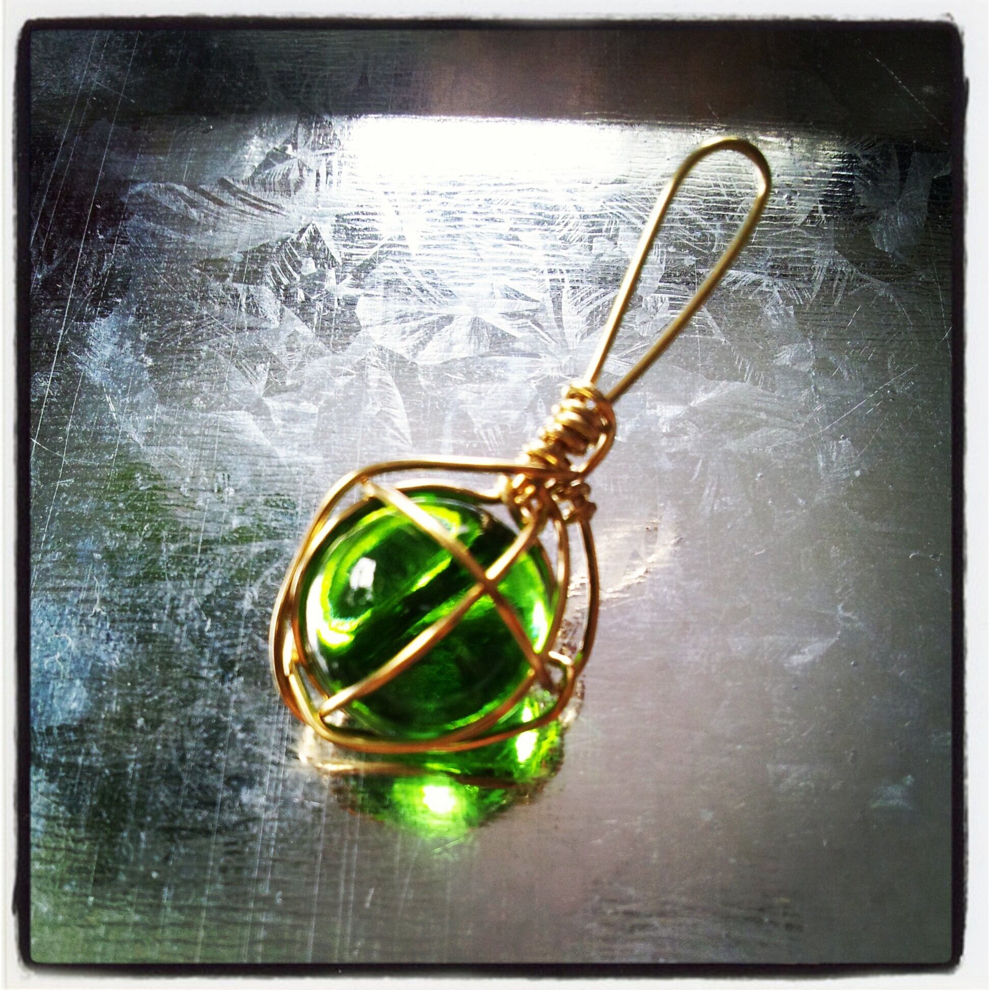 真鍮ワイヤーでビー玉を閉じ込めました。